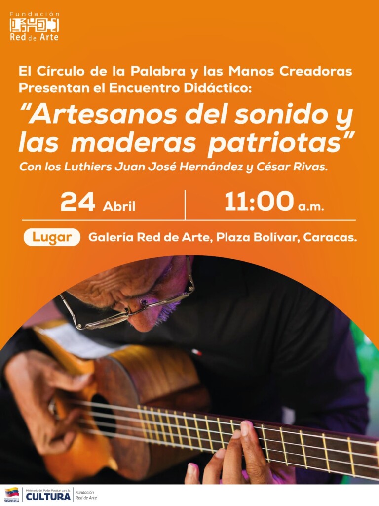 En el marco de la celebración del Día Nacional del Cuatro, este viernes 24 de abril a partir de las 11:00 a.m., la Fundación Red de Arte ente adscrito al ministerio del Poder Popular para la Cultura presenta la décima edición del Círculo de la Palabra y las Manos Creadoras, con el conversatorio titulado: Artesanos del sonidos y las maderas patriotas, un encuentro que busca reivindicar al cuatro venezolano, no como un instrumento musical, sino como un vínculo de identidad nacional; donde la materia prima se transforma en memoria viva para trasmitir las tonadas musicales del pueblo venezolano.