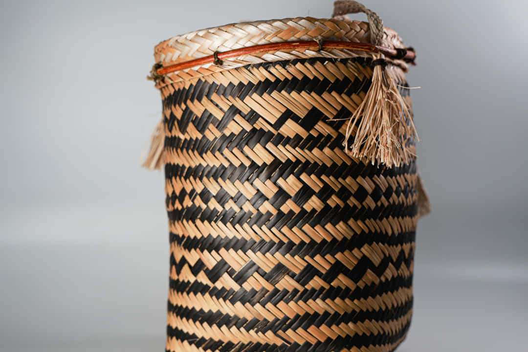 Elaborada en fibra de Tirite, pintada con tintes vegetales y cordón de Moriche.