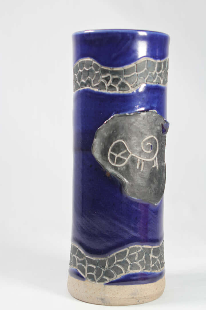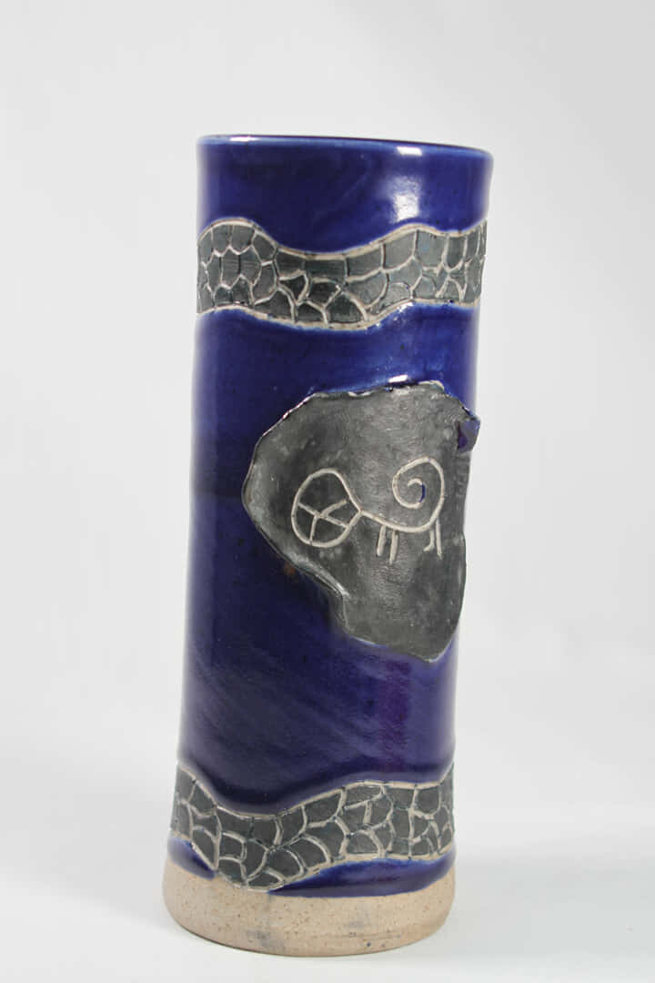 Torneado y modelado en gres. Pintado con con oxido de cobalto.
