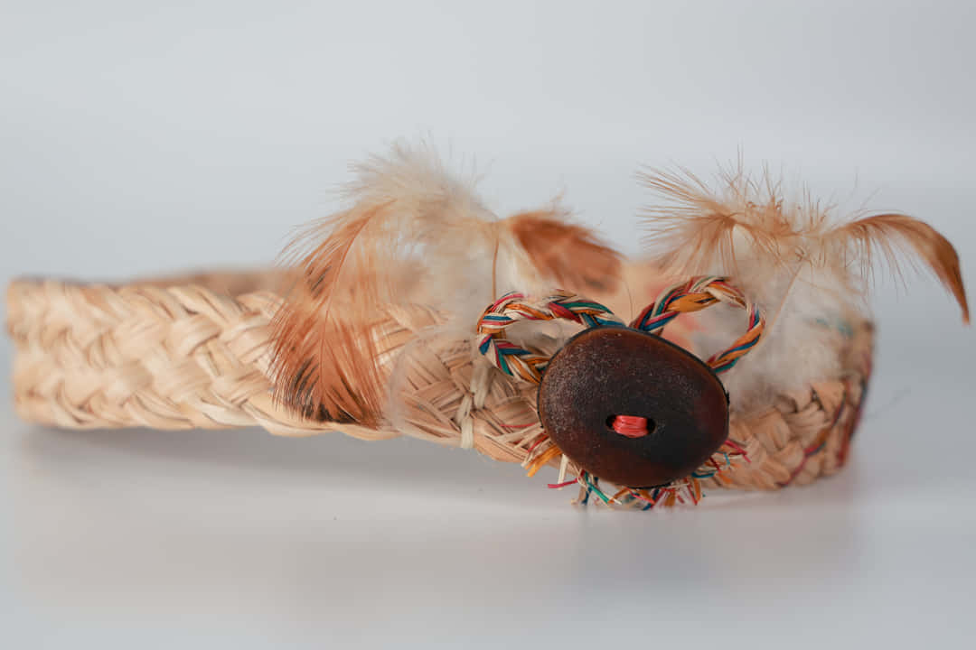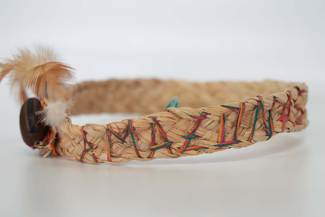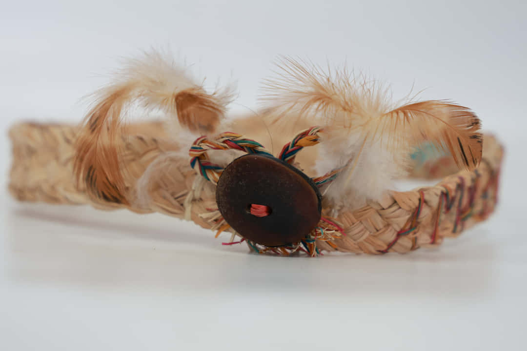 Elaborado en fibra de moriche con plumas naturales y semillas