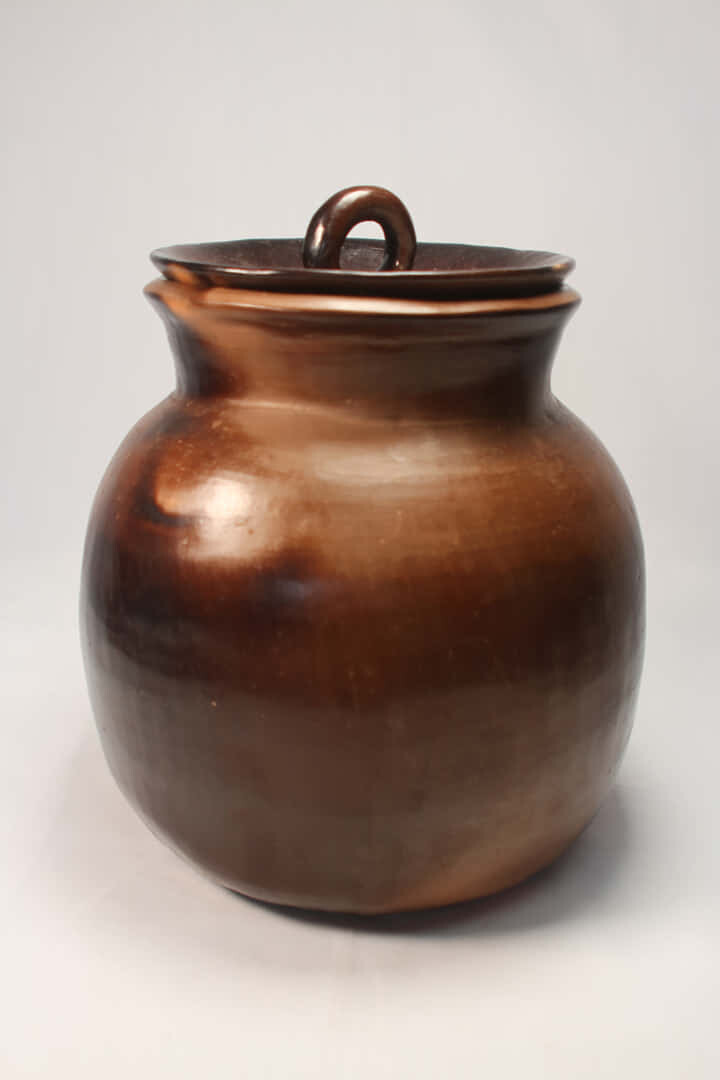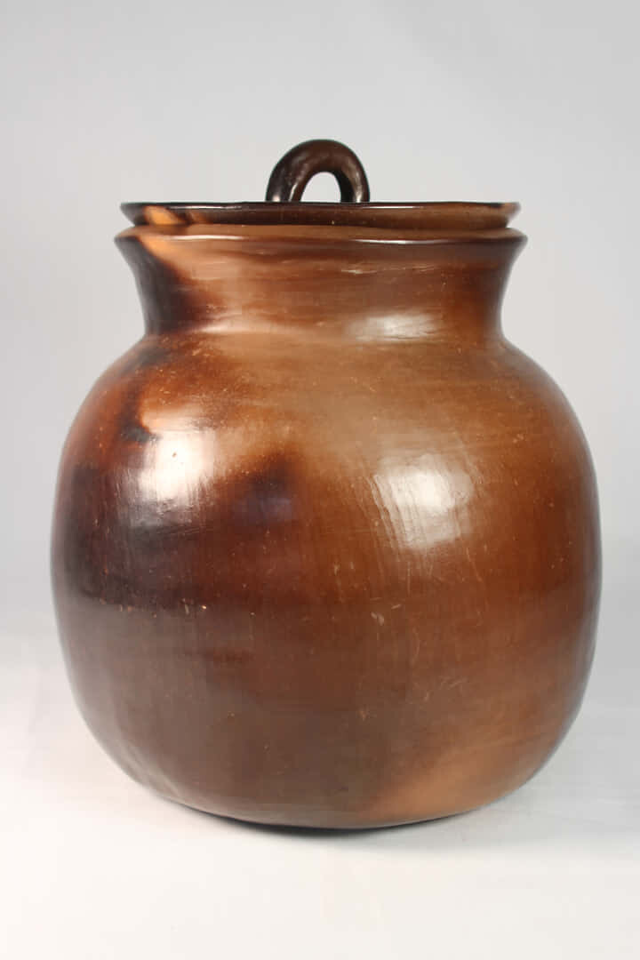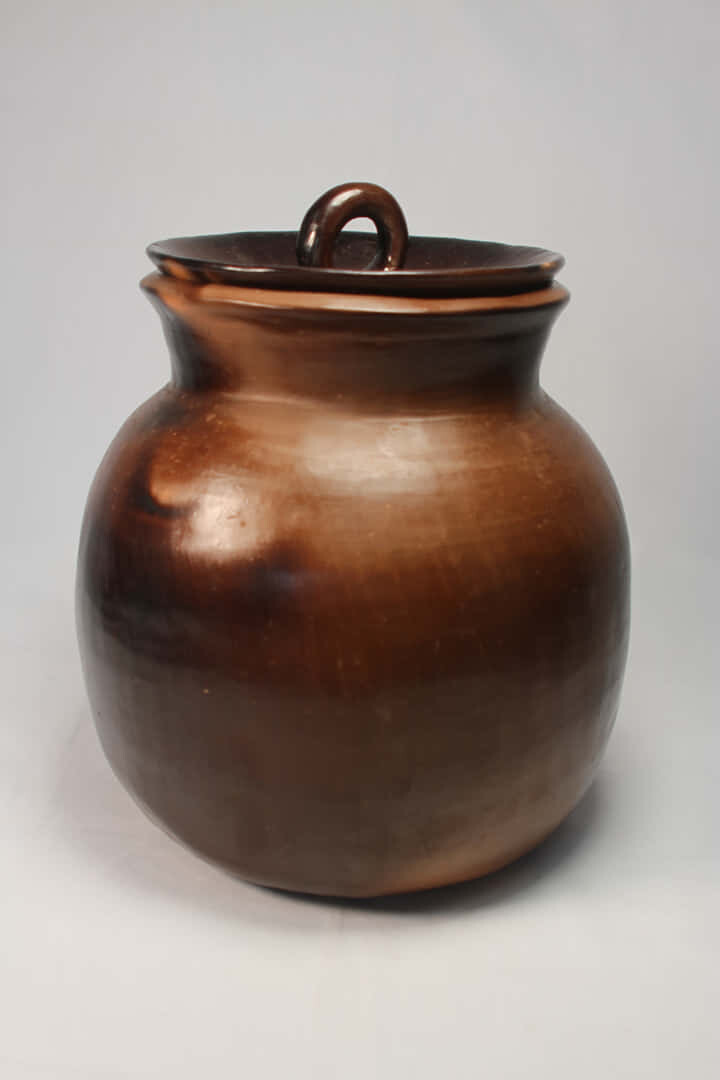 Elaborada en arcilla color tierra, quemada en horno a fuego abierto y bruñida.